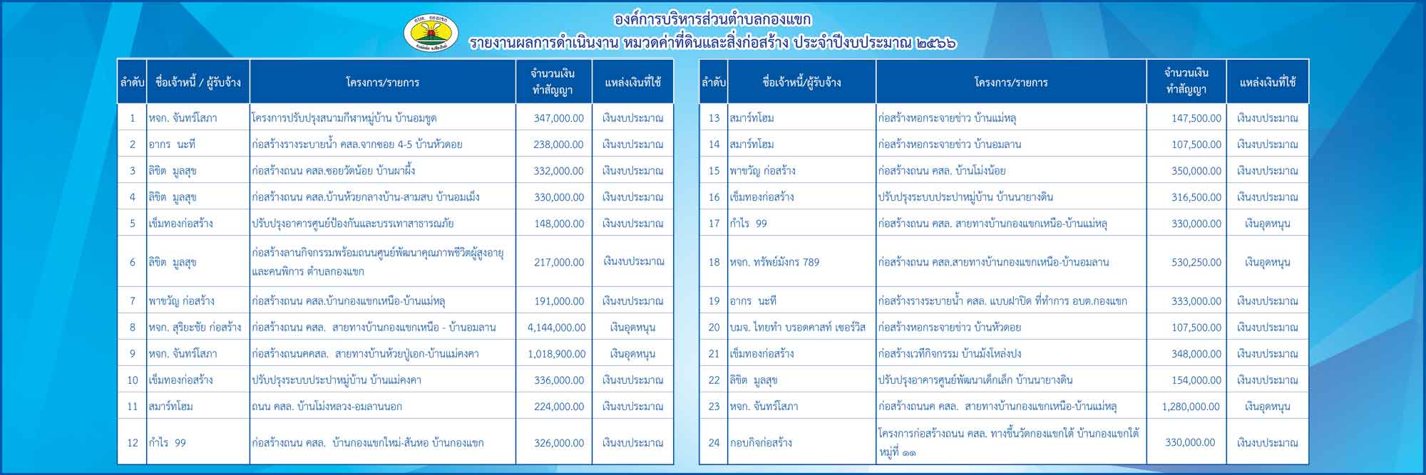 รายงานความก้าวหน้าการจัดซื้อจัดจ้างหรือการจัดหาพัสดุ องค์การบริหารส่วนตำบลกองแขก ที่มีการลงนามในสัญญาแล้ว ณ วันที่ ๓๑ ม.ค. ๒๕๖๗