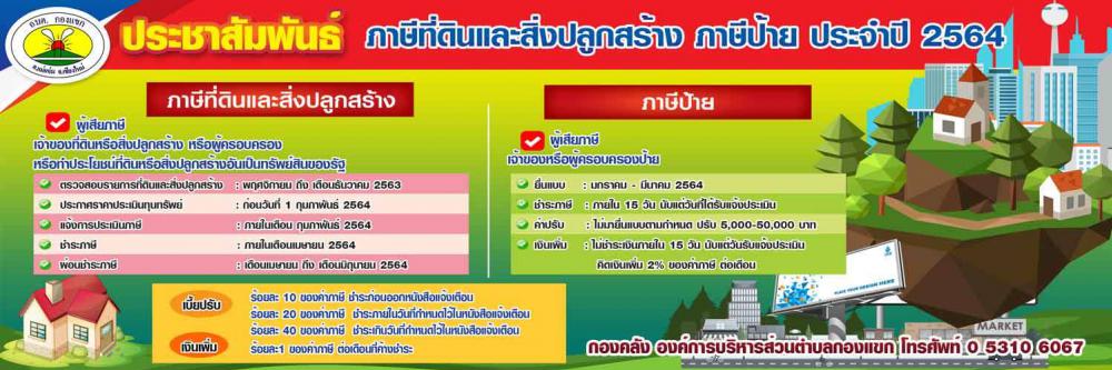 ประชาสัมพันธ์ ชำระภาษีที่ดินและสิ่งปลูกสร้าง ภาษีป้าย ประจำปี 2564