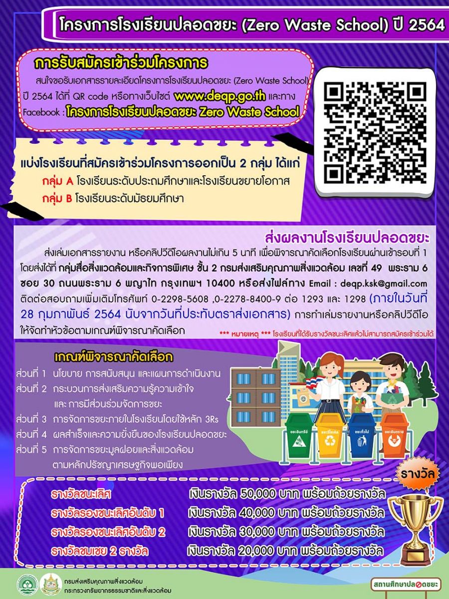 ประชาสัมพันธ์การประกวดโครงการโรงเรียนปลอดขยะ (Zero Waste School) ปี 2564