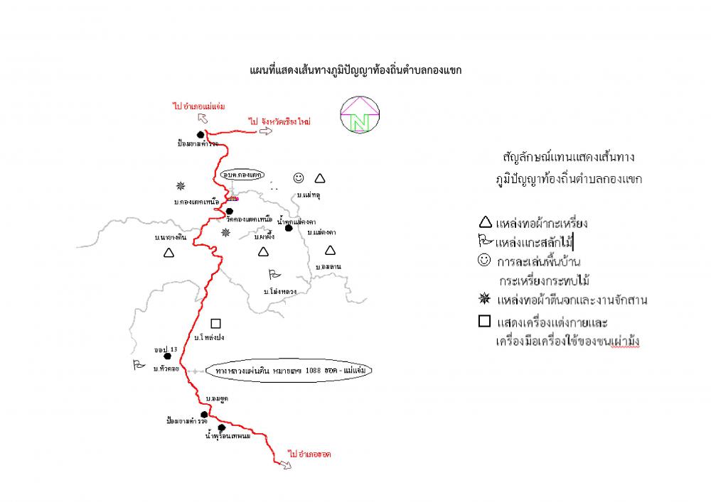 แผนที่แสดงเส้นทางภูมิปัญญาท้องถิ่นตำบลกองแขก