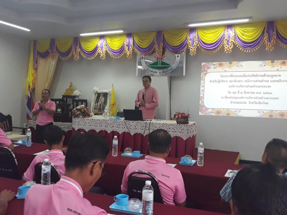 การจัดทำโครงการฝึกอบรมเพิ่มประสิทธิภาพด้านกฎหมายสำหรับ ผู้บริหาร สมาชิกสภา พนักงานส่วนตำบล และพนักงานจ้าง อบต.กองแขก