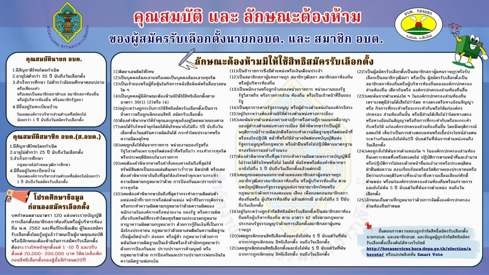 คุณสมบัติผู้สมัคร สมาชิกสภา อบต. และ นายก อบต. ➡️ เปิดรับสมัครวันที่ 1–5 ธันวาคม 2568 ตั้งแต่เวลา 08.30 – 16.30 น. ไม่เว้นวันหยุดราชการ ➡️ สอบถามรายละเอียดเพิ่มเติม ☎️ 053-106067 (งานการเจ้าหน้าที่)  [30-11-2568] [8 view]