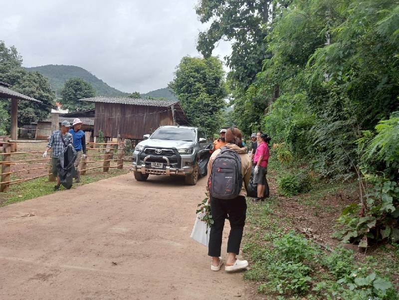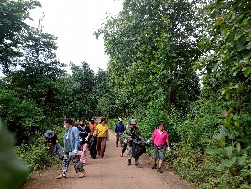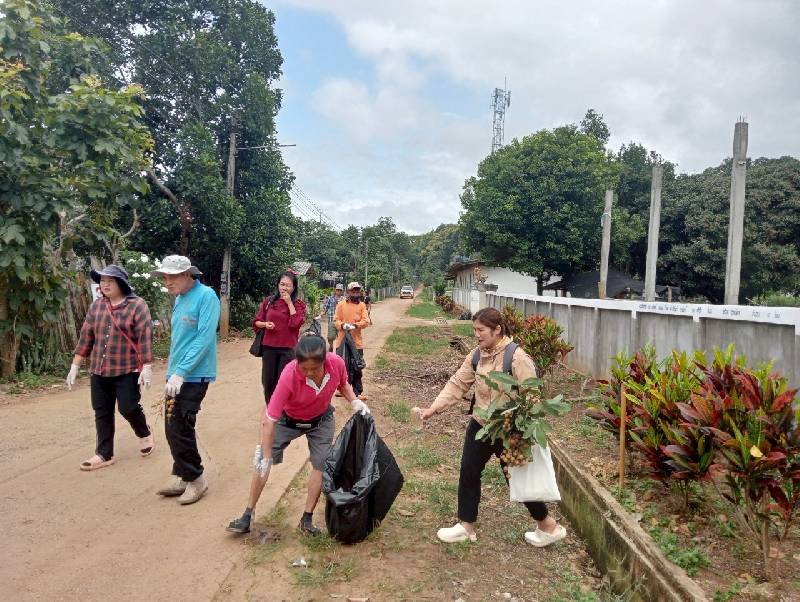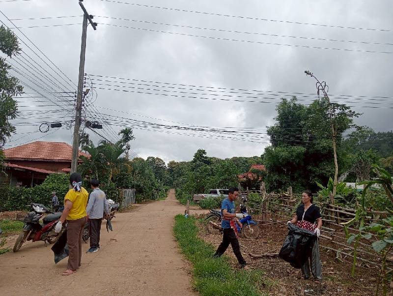 อาสาสมัครท้องถิ่นรักษ์โลกได้เก็บขยะในหมู่บ้านเพื่อลดโรคขยะลดโรคไข้เลือดออก